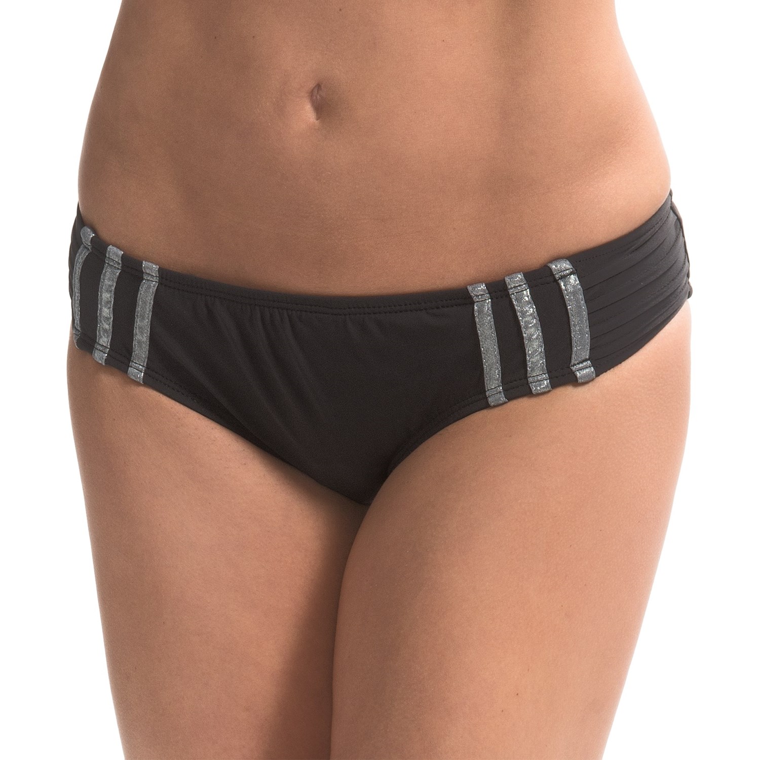 Closeouts. Pleated sides and metallic stripes jazz up the hipster cut of these Adidas Pleat of Dreams bikini bottoms.