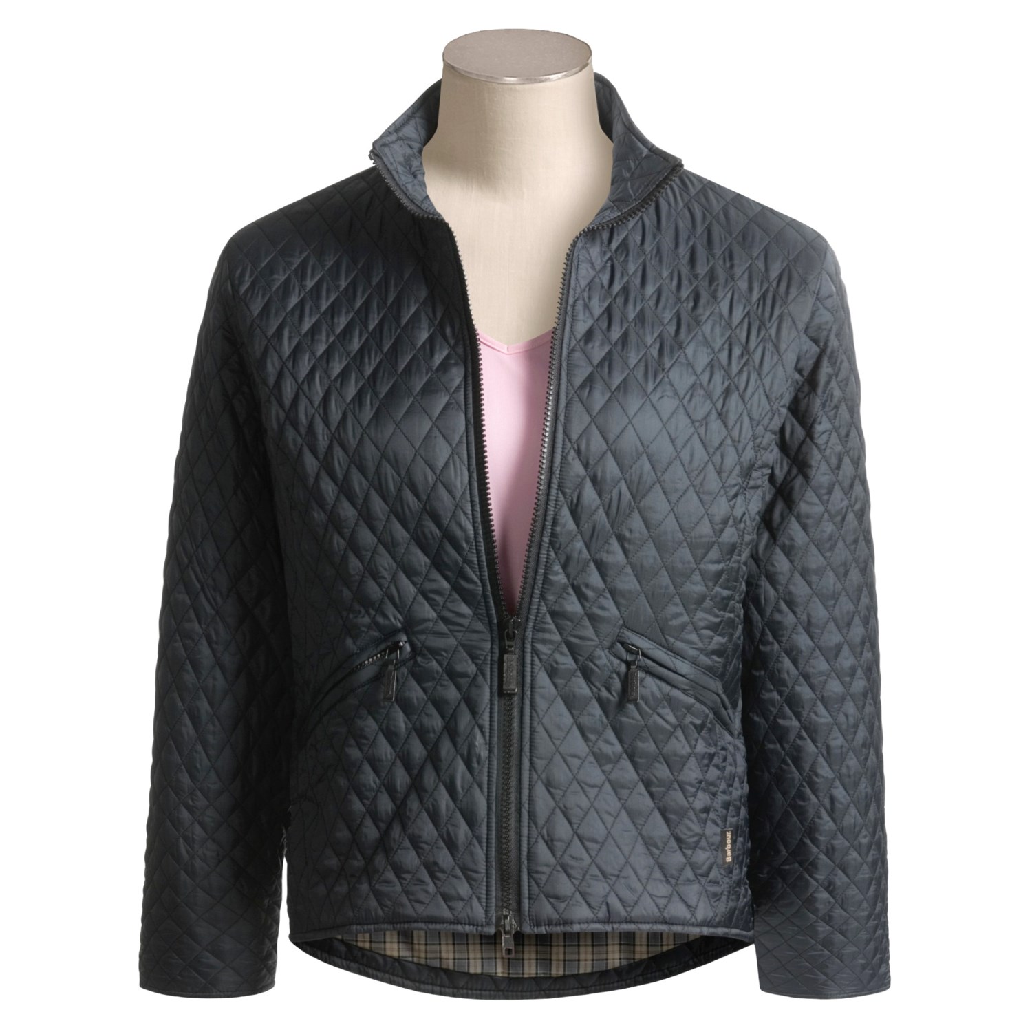 Closeouts. This Barbour Tailored Flyweight quilt jacket features wonderful design on the outside and charming plaid fabric on the inside.