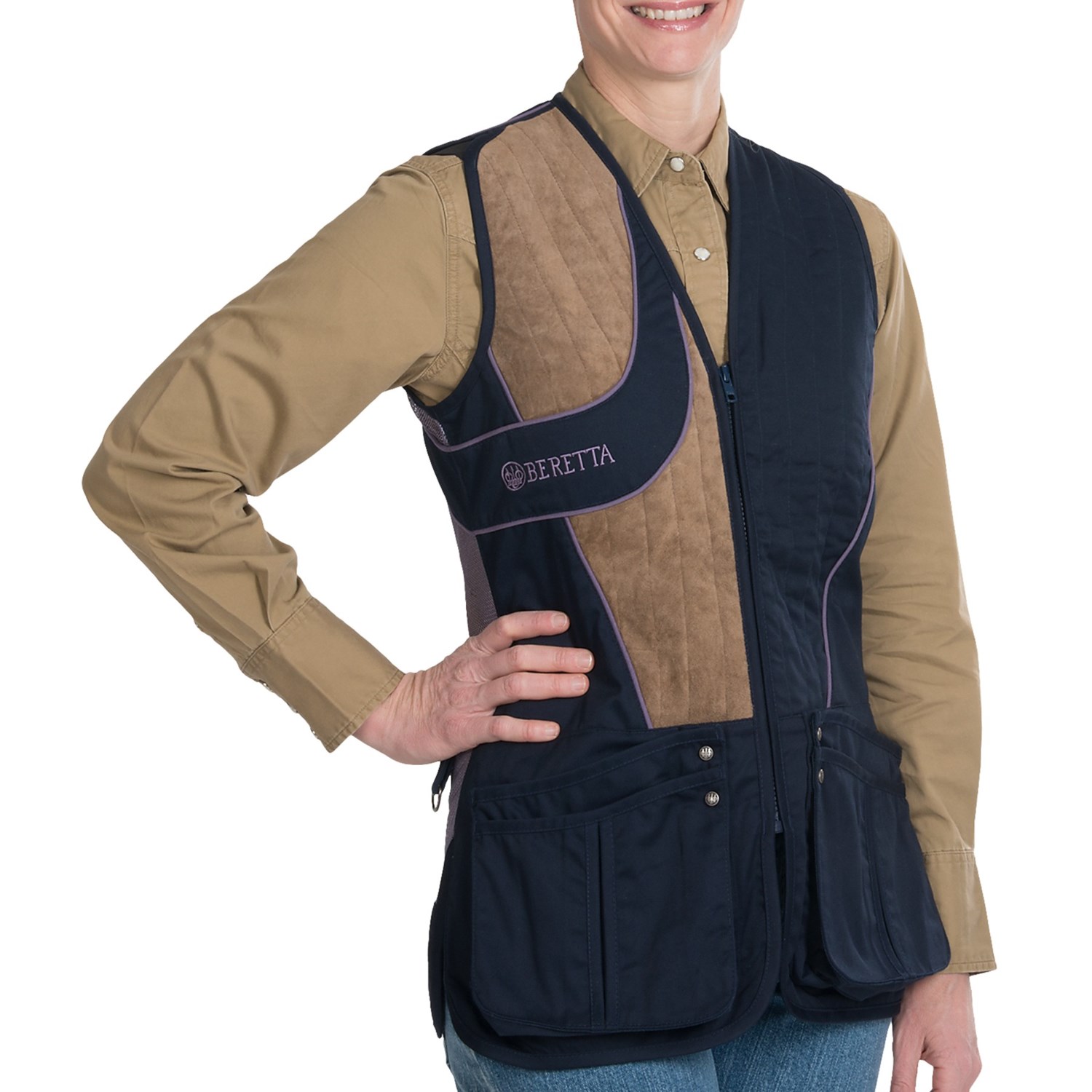 Closeouts. Enjoy comfort and cushioning on the range with Beretta’s Uniform shooting vest. The ambidextrous design has a suede shooting patch, and the included recoil reducer protects you from vibration and recoil pain.