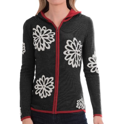 Wild Flower Hooded Sweater – Merino Wool, Full Zip (For Women) -