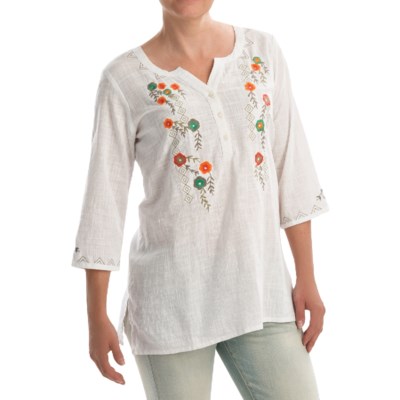 Signature Whites Fiora Tunic Shirt – 3/4 Sleeve (For Women) -