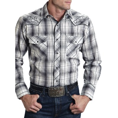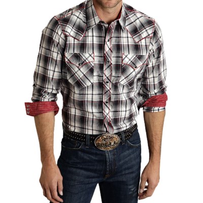 Plaid Western Shirt – Snap Front, Long Sleeve (For Men) -