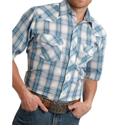 Classic Plaid Western Shirt – Snap Front, Short Sleeve (For Tall Men) -