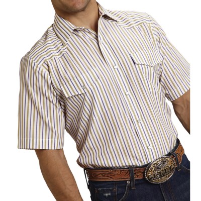 Classic Stripe Shirt – Snap Front, Short Sleeve (For Men) -