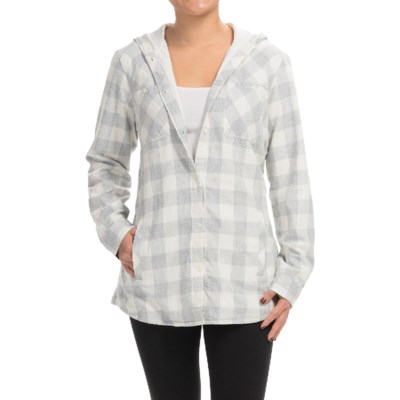 Fully Lined Plaid Flannel Hoodie – Button Front (For Women) -