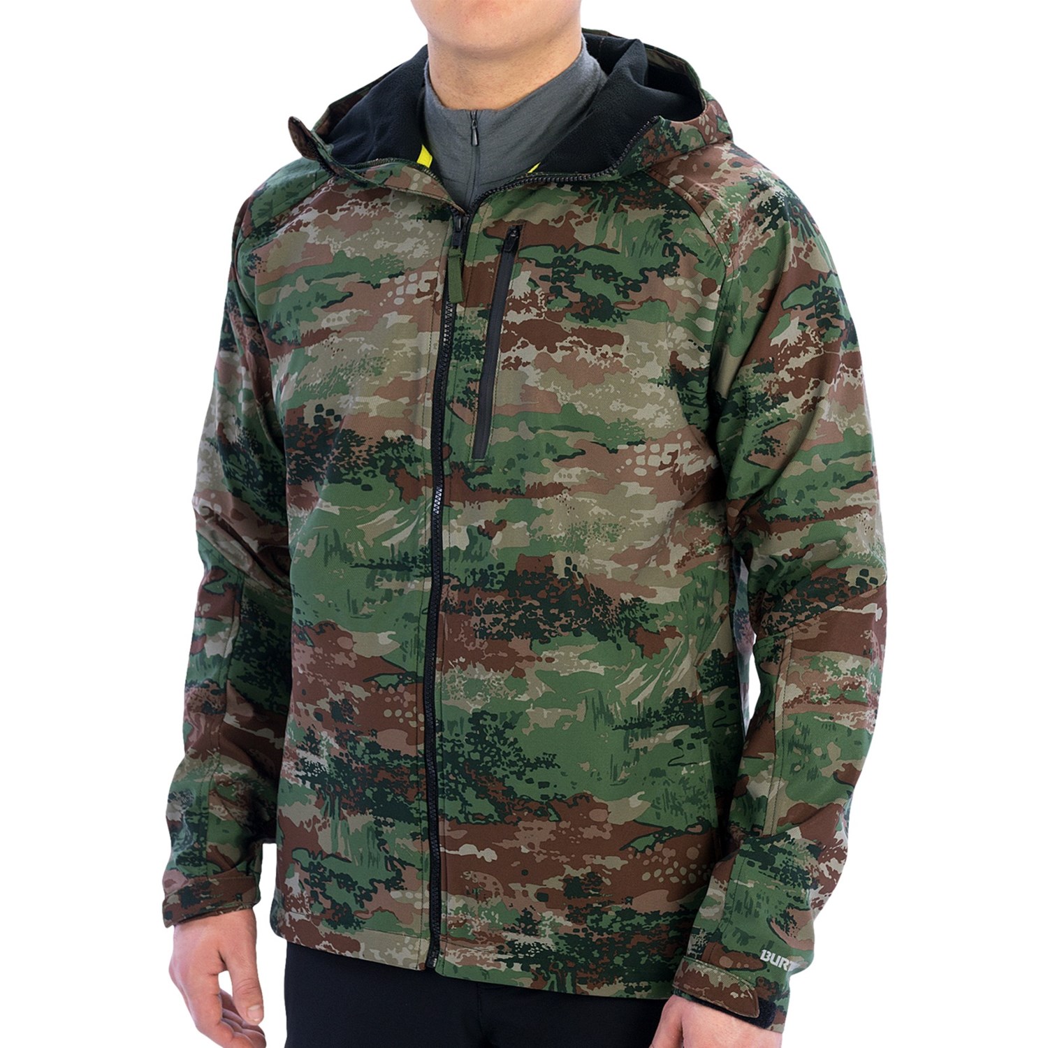 Closeouts. Bring some serious style to your mountain game with Burton’s Process jacket. The DRYRIDE soft shell has a DWR treatment to repel moisture, the attached hood adds an extra layer of coverage, and ample pockets provide room for all your essentials when you’re tearing up the fresh powder.