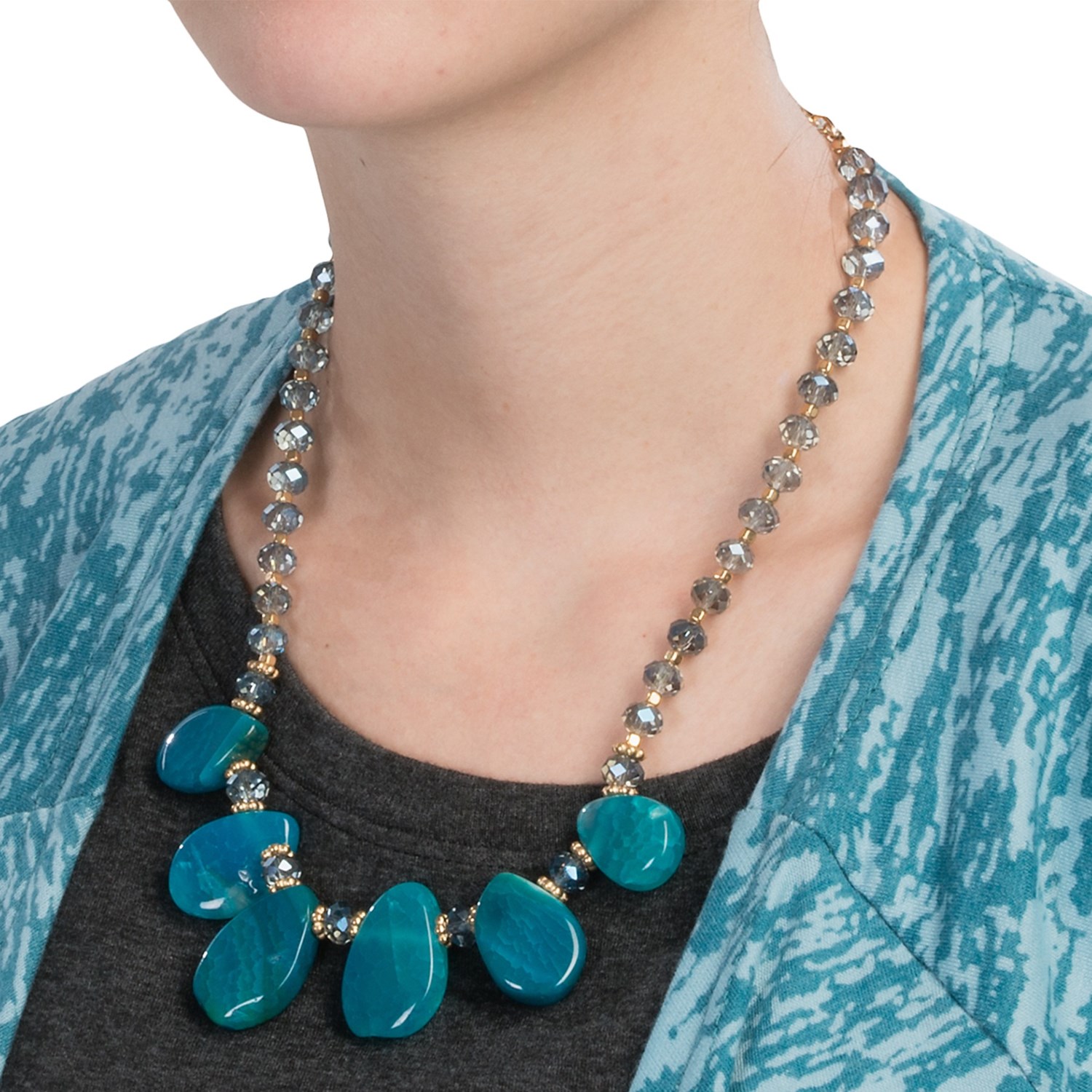 Closeouts. Smooth-polished stones and sparkling glass beads create the dazzling effect of this Cara Accessories statement necklace, accented by gold-tone hardware throughout.