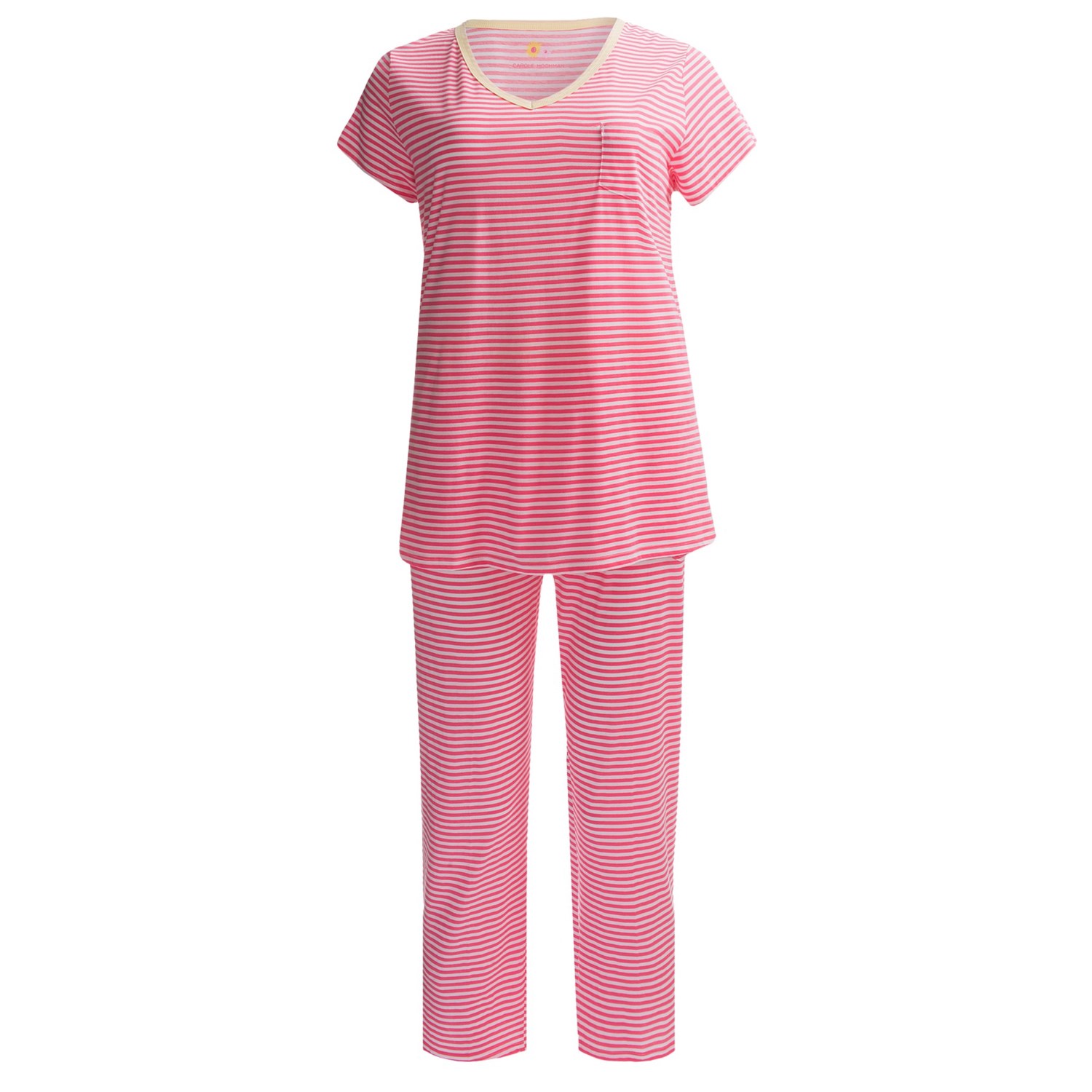 Closeouts. Whether you slumber in New York or Bermuda, everything will feel luxuriously exotic when you pair bedtime with the supersoft knit cotton of Carole Hochman’s Tropical Escape pajamas. The vibrantly colored print and light jersey cotton make every night feel like an escape.