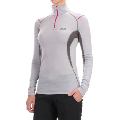 Warm Crystal Base Layer Top – Merino Wool, Zip Neck, Long Sleeve (For Women) -