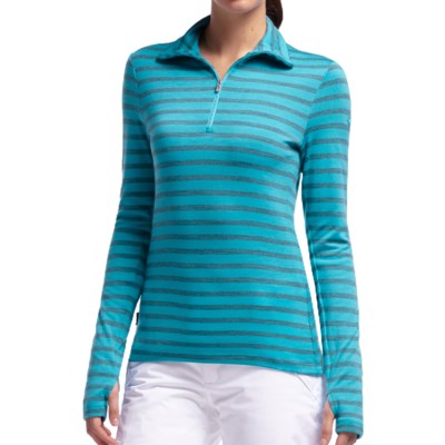 Bodyfit 260 Stripe Tech Base Layer Top – UPF 30+, Merino Wool, Zip Neck, Long Sleeve (For Women) -