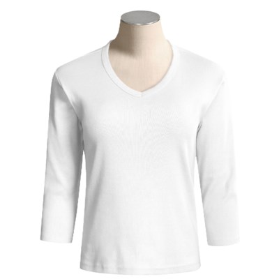 Cotton V-Neck Shirt – ¾ Sleeve (For Women) -