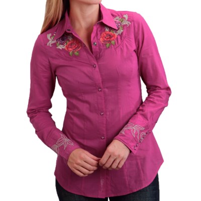 Embroidered Floral Shirt – Snap Front, Long Sleeve (For Women) -