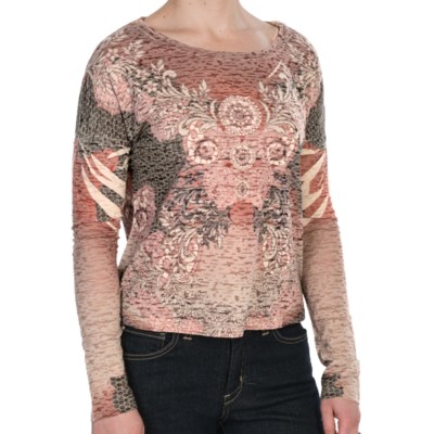 Swirls and Cross Burnout T-Shirt – Long Sleeve (For Women) -