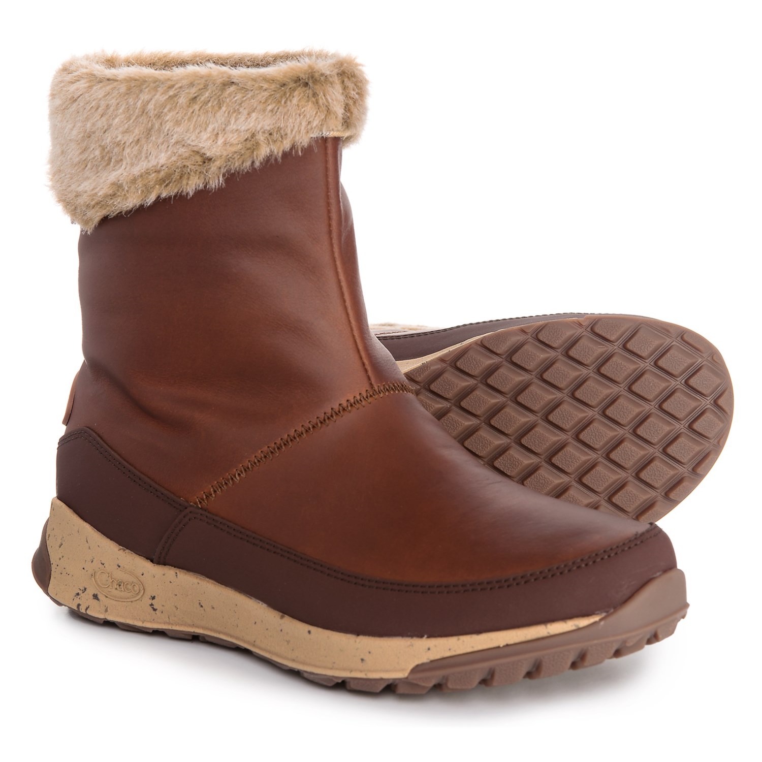 Closeout. Take it easy and step comfortably in Chaco’s Borealis Mid boots. They offer full waterproof protection under a layer of sleek, supple leather and are finished with a faux-fur collar and grippy outsole.