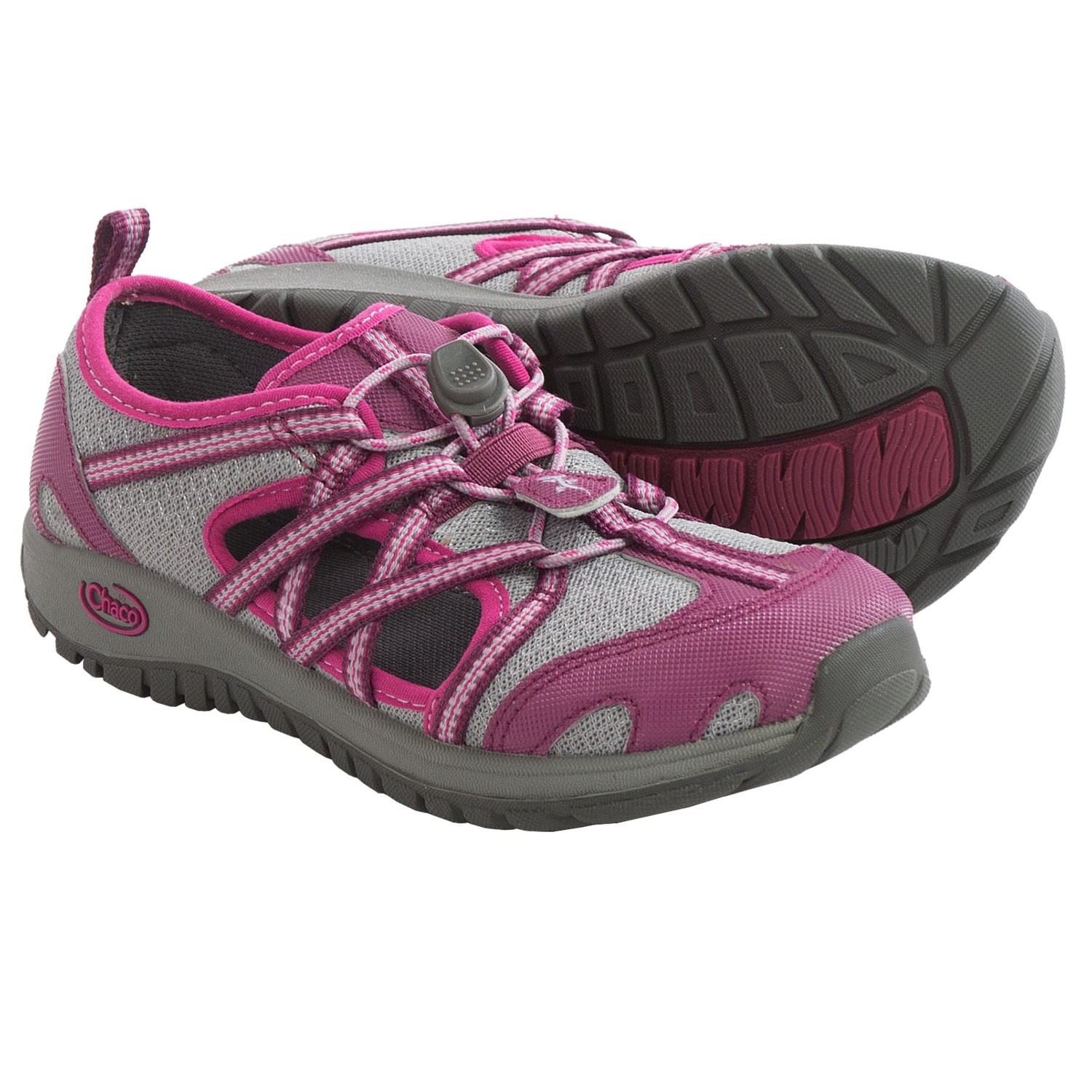 Closeouts. Trail to stream, Chaco’s OutCross water shoes make a sturdy, supportive and splash-ready companion. A partially open upper provides optimum protection and draining, and the supportive LUVSEAT® footbed and grippy outsole work together to keep your kiddo sturdy and safe on varied terrain.