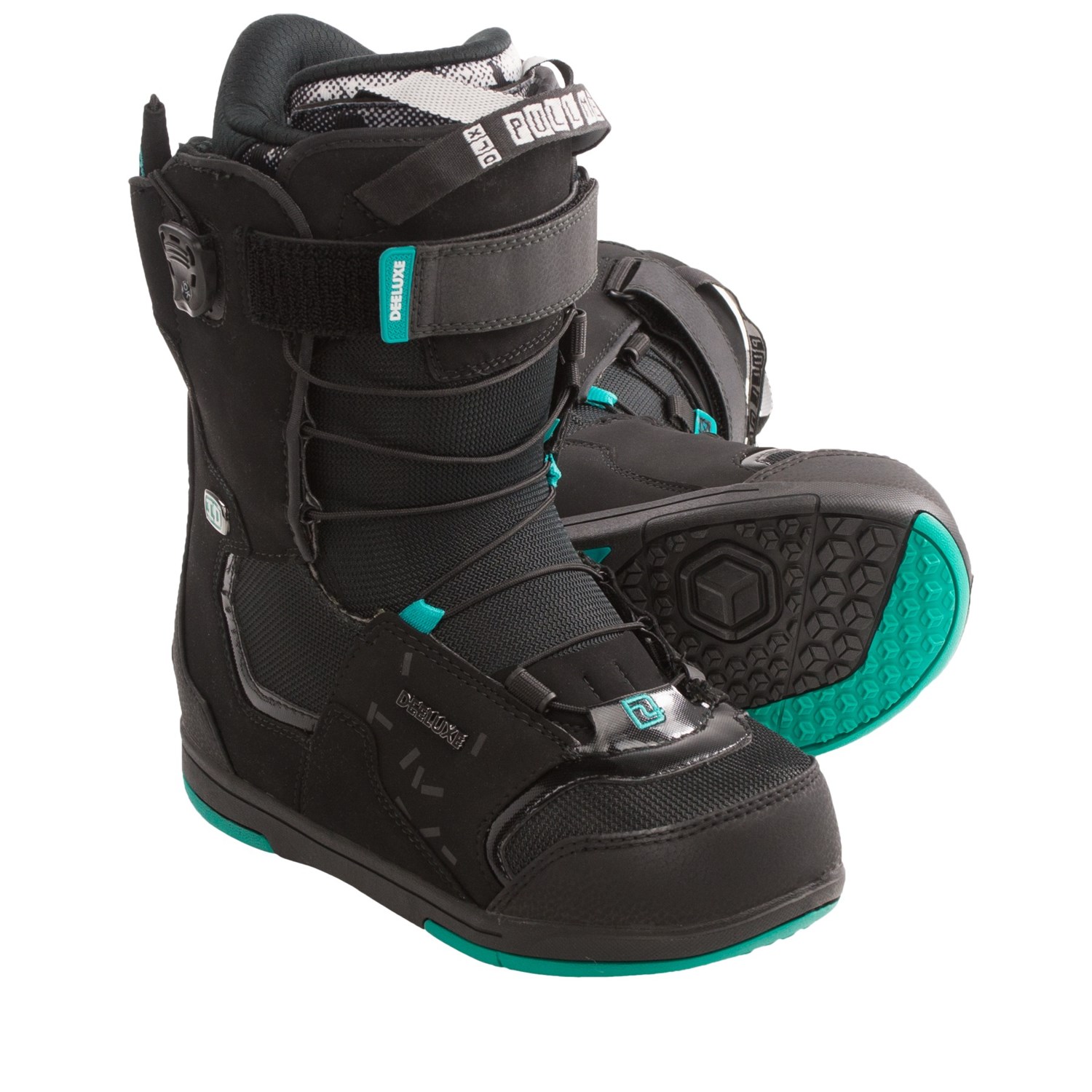 Closeouts. A women-specific freestyle boot with balanced flex, Deeluxe ID PF snowboard boots features three-zone Section Control lacing, a low-profile D-Lug outsole and toe cap.