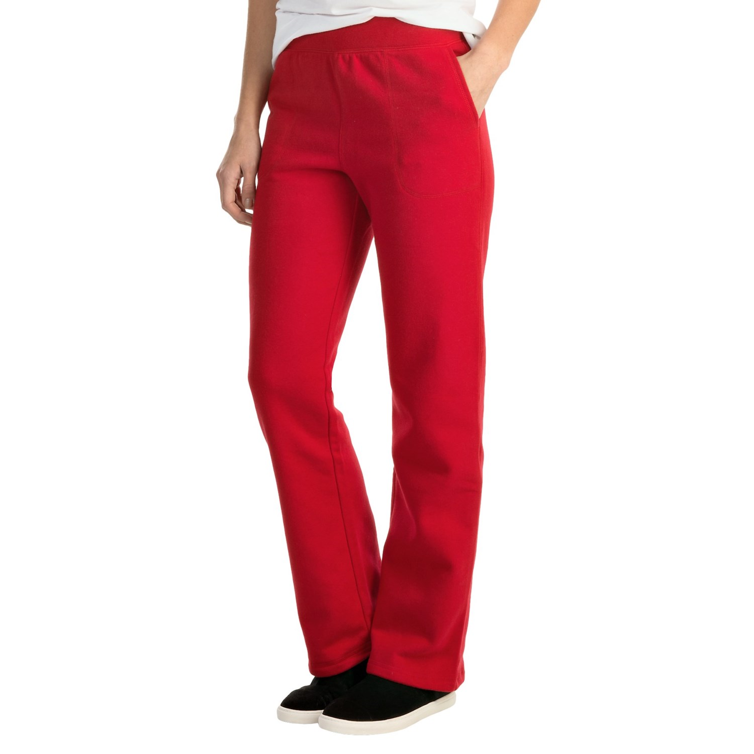 Closeouts. The weather outside is frightful but you’re delightfully warm and cozy in these fleece pants. The brushed cotton blend has fleeced lining for warmth, and the wide waistband is non-binding for a comfortable fit.