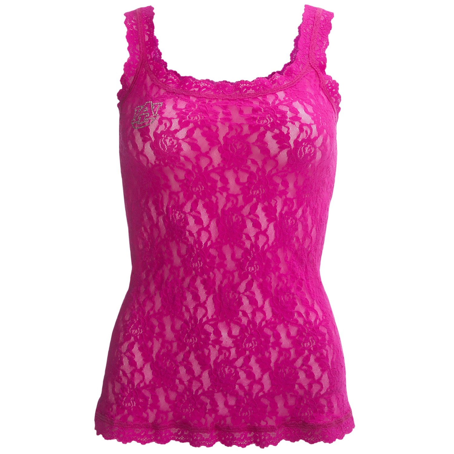 Closeouts. Sparkling crystals atop Hanky Panky’s Collegiate scalloped lace camisole create a fun way to display your team spirit!