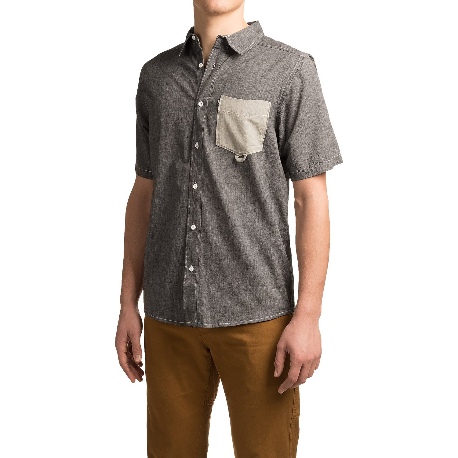 - Contrast chest pocket with sunglass loop