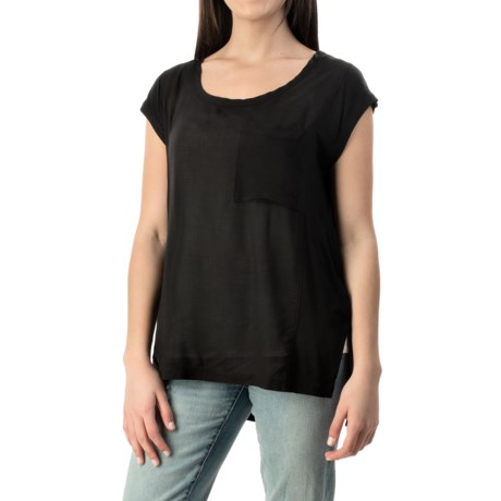 Knit-to-Woven Pocket T-Shirt – Short Sleeve (For Women)
