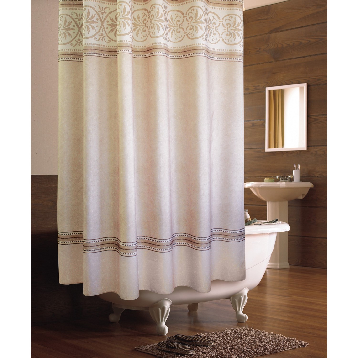 Closeouts. A decadent addition to your bathroom decor, Legacy’s Verona fabric shower curtain displays an allover granite-look print and wide, decorative border on top.
