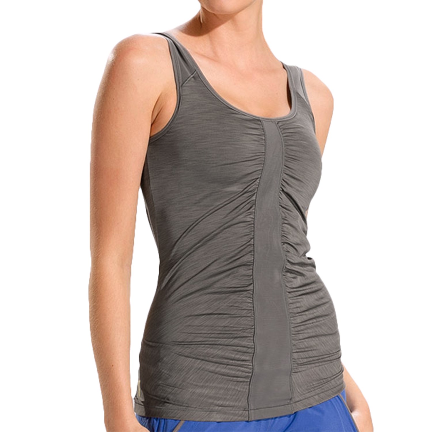 Closeouts. Flirty and flattering in a mix of delicately gathered space-dye fabric and wicking power mesh, Lole’s Zenith tank top is sure to complement you at the height of your form.