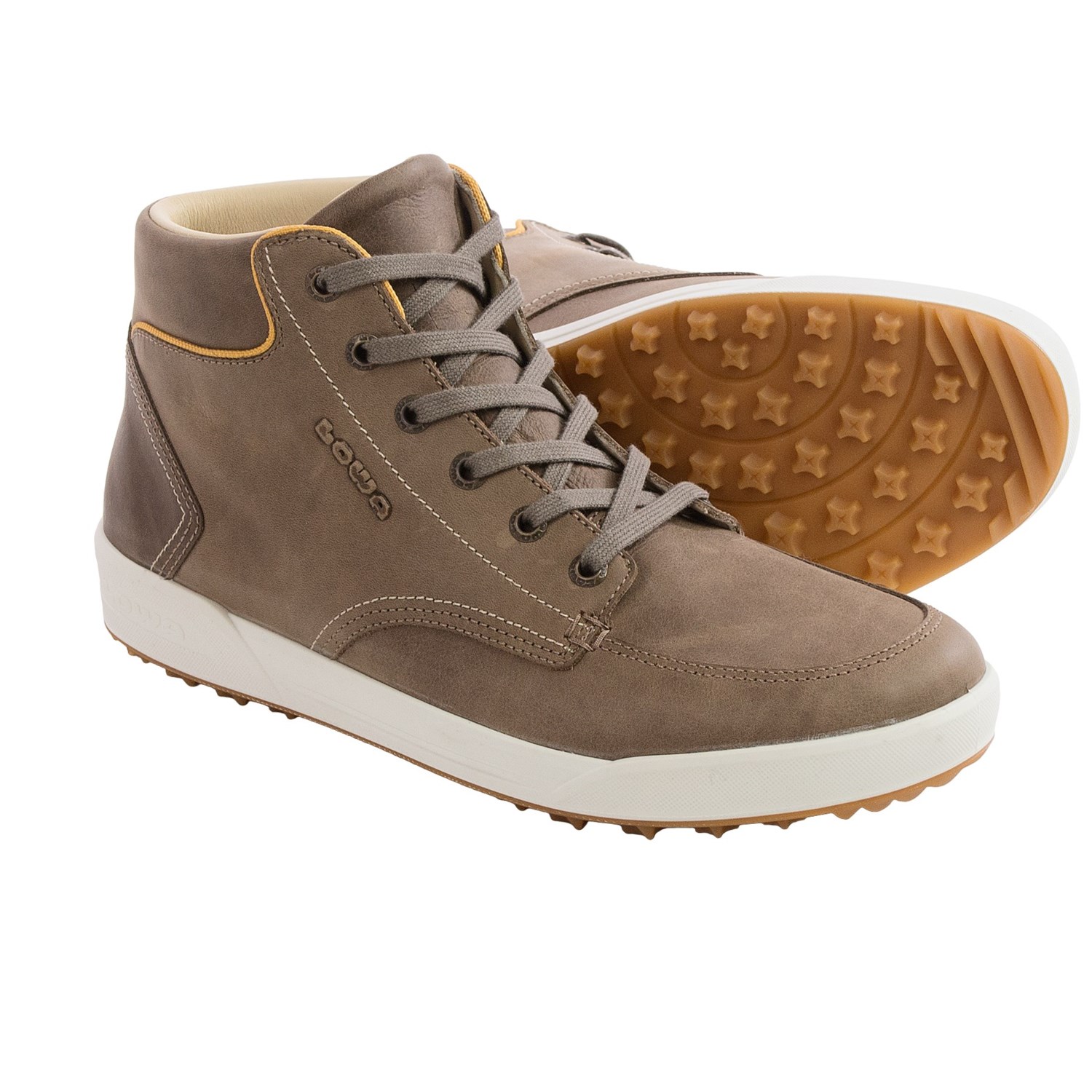 Closeouts. Lowa’s Richmond LL Qc sneakers feature a high-top design in a soft, waxed nubuck that oozes with old-school personality and still shines with plenty of modern appeal. A padded collar and removable, cushioned insole make them a clear winner for comfort, too.