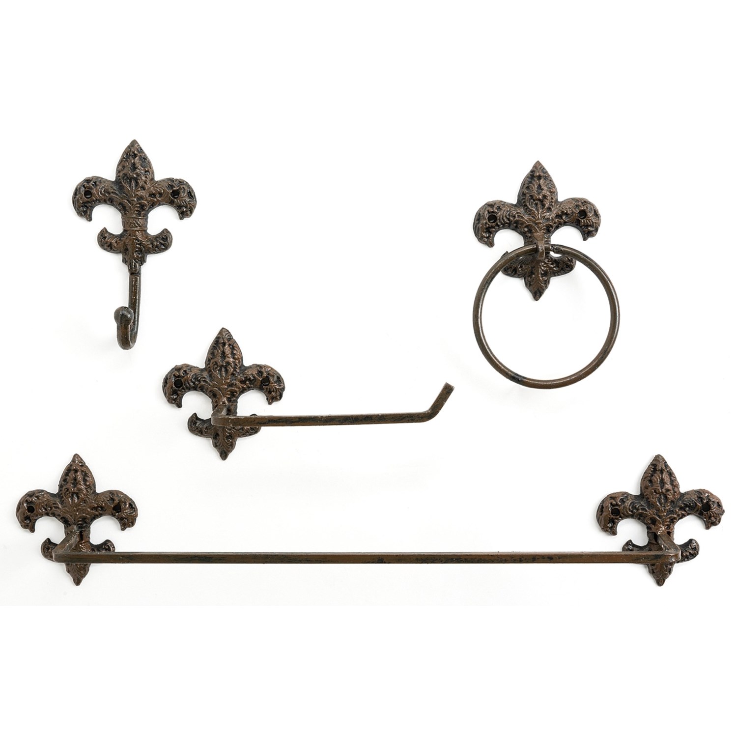 Closeouts. A symbol of purity and a much-loved icon of western art, the fleur-de-lis adorns the hook, ring and rods included in M&F Western’s Bath Hardware set.