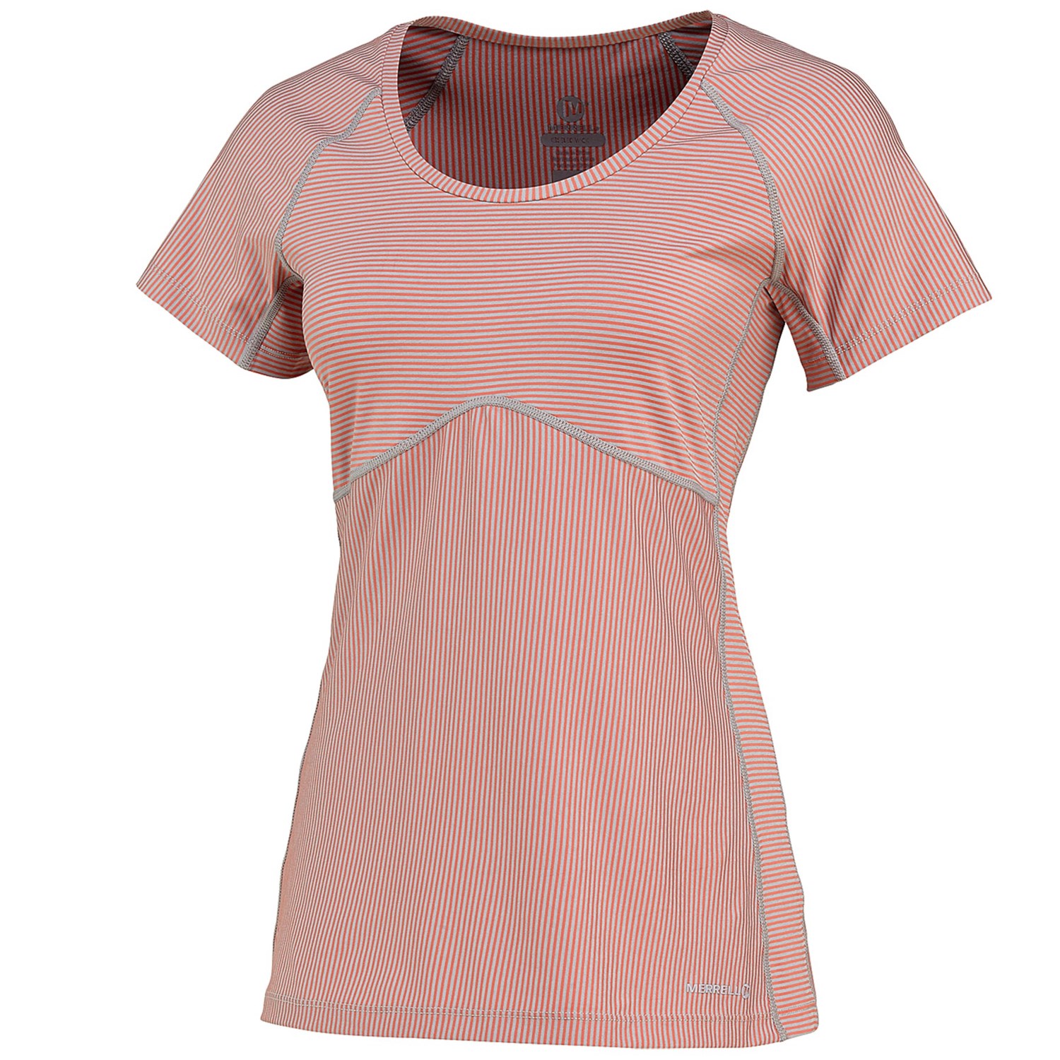 Closeouts. Stunning stripes atop performance-enhanced M Select WICK fibers create a lightly textured, silky-soft hand in Merrell’s DeVeau shirt, a flatteringly seamed favorite for active gals everywhere.