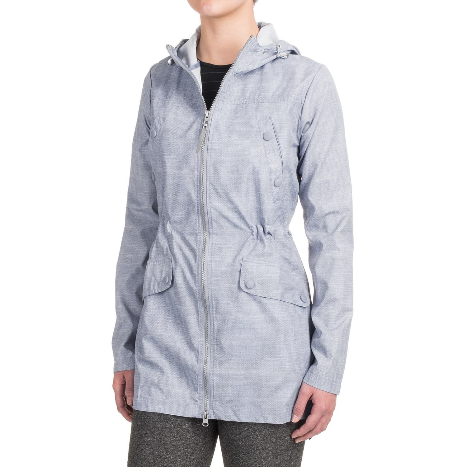 - Attached hood with drawcord adjustment