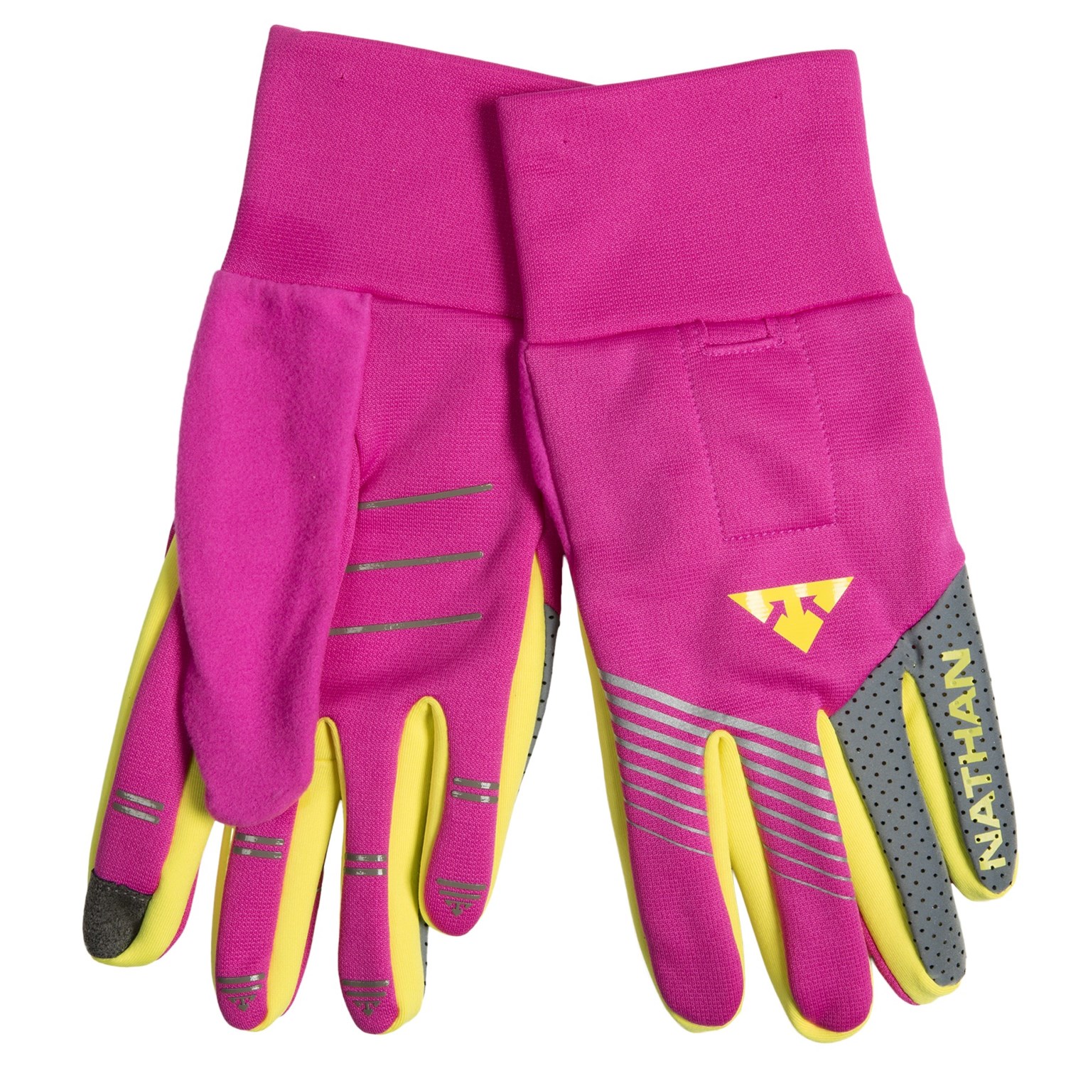Closeouts. Every dedicated runner needs a pair of Nathan’s Bronco running gloves, because every dedicated runner is bound to log some miles in the dark. Microfleece fabric and 3M® reflective pinky and ring fingers offer soft warmth and reflective safety in low-light conditions.