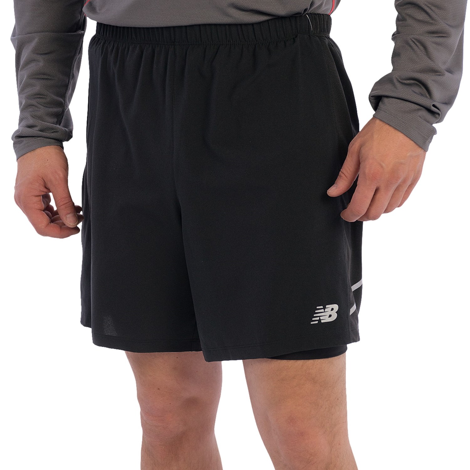 Closeouts. Take your active day to next-level with New Balance’s Speed 2-in-1 shorts. These babies feature a seriously comfortable, moisture-wicking built-in short below a superlight, non-restrictive exterior short, which is outfitted with cooling mesh panels to enhance airflow.