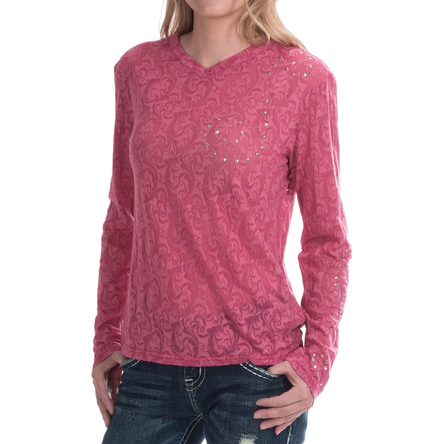 Junee Studded Burnout T-Shirt – Long Sleeve (For Women)