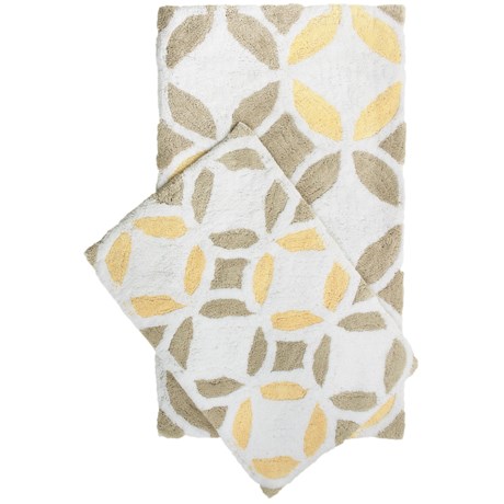 Closeouts. A great buy on two plush landings for your feet! You’ll love the silky, toe-pleasing finish of Vista Home’s Trinity Collection Brigatani bath rugs as much as the softly sculpted geometrics. High-loft cotton with heavy stitching on reverse.