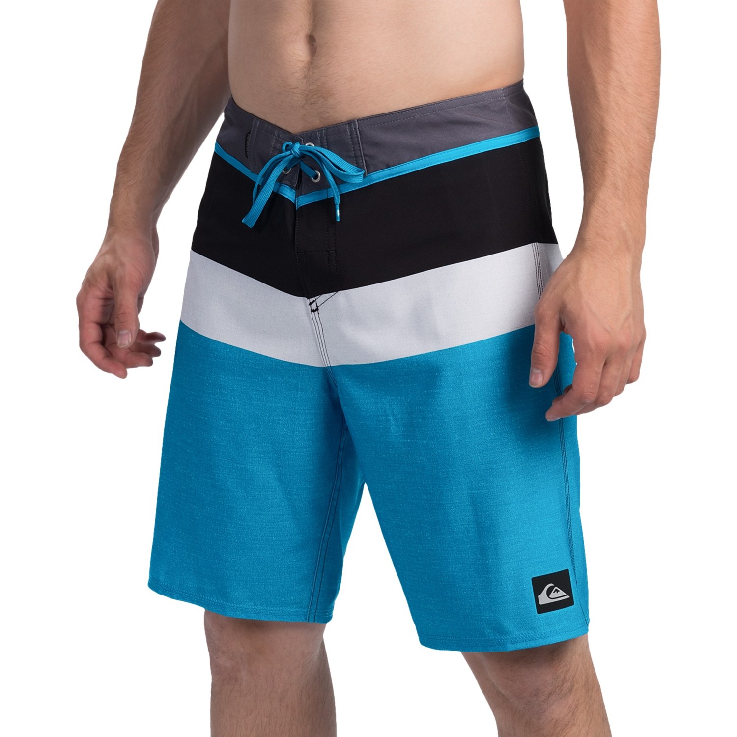 - Classic boardshort lacing with touch-fasten fly
