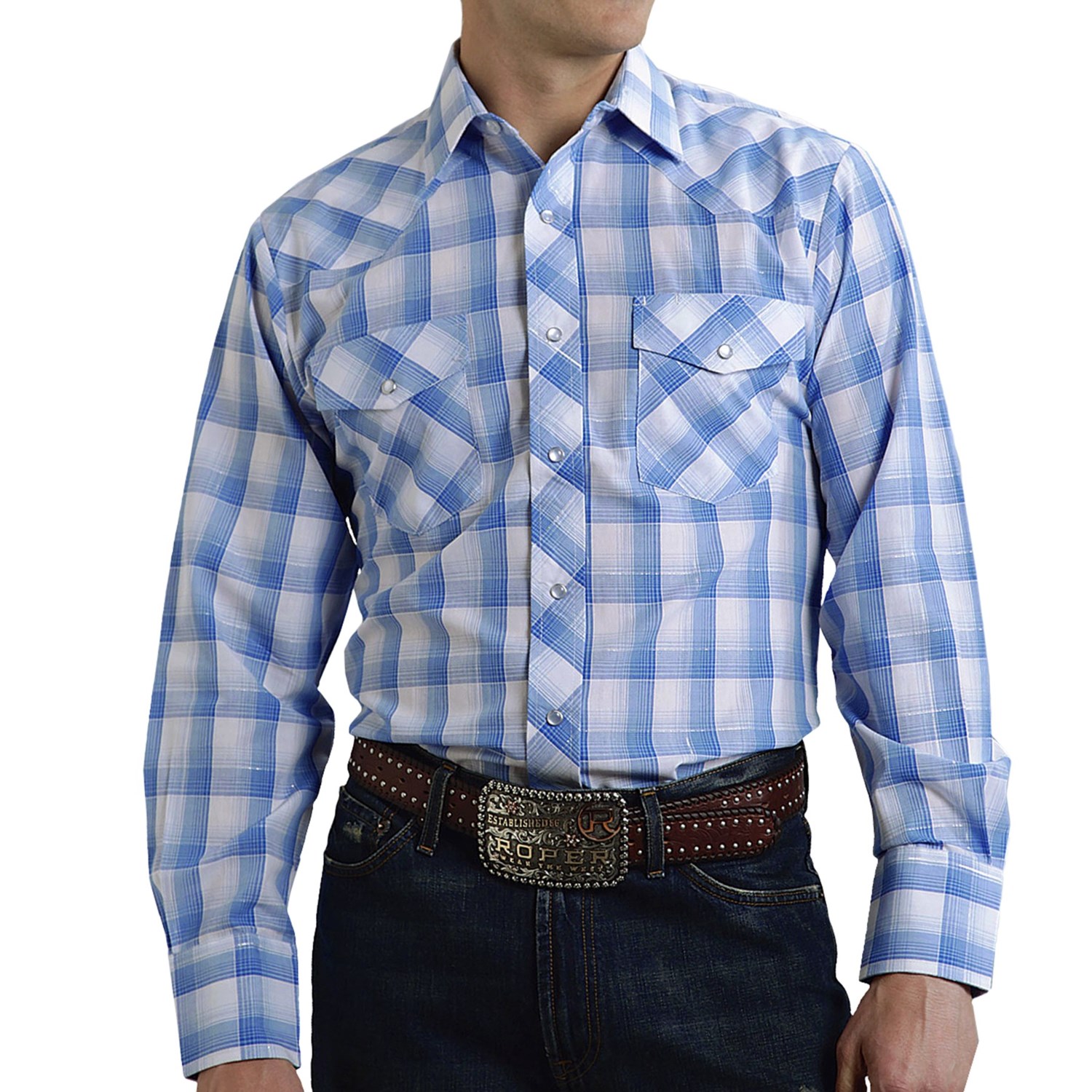 Closeouts. Even the roughest cowboys need to shine up every once in a while, and Roper’s metallic plaid shirt is exactly what they need for a dressy night out. The light, airy cotton-blend fibers are infused with shimmery Lurex® threading for just a hint of sparkle, and the classic western cut stays true to its roots.