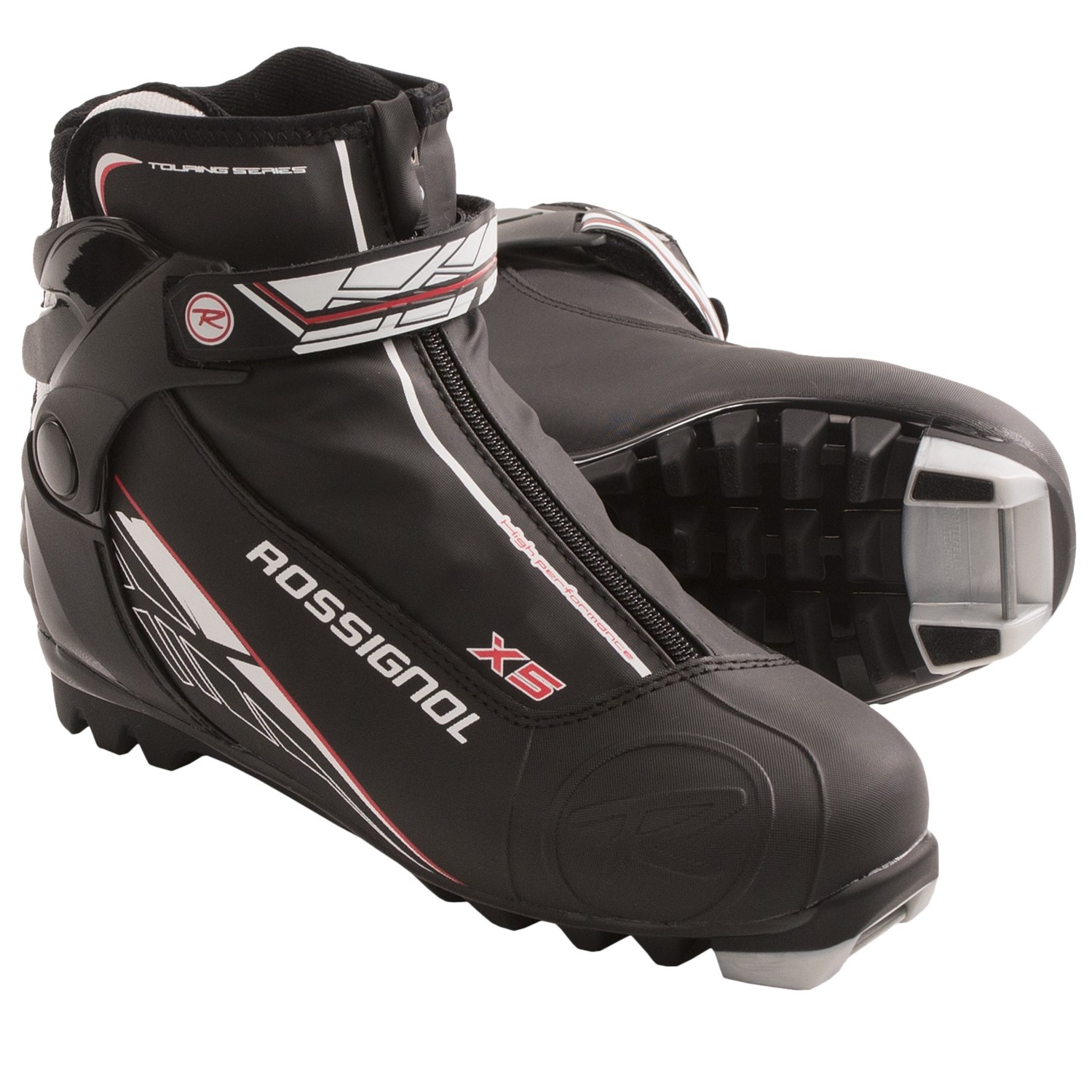 Closeouts. Rossignol X5 FW touring boots feature a balance of flex and support for touring skiers and developing skate skiers. It has a taller cuff and a thermo-moldable liner that can be customized to the shape of the foot.
