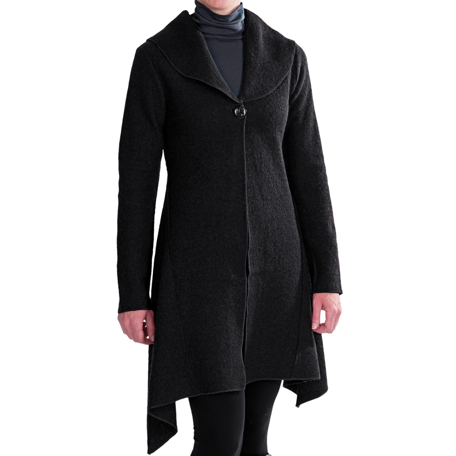 Closeouts. Venario’s Dawn jacket makes an elegant cover when the weather is windy and chilly. The boiled wool does an excellent job of blocking wind, and you’ll love the way the portrait collar frames your neckline and face.