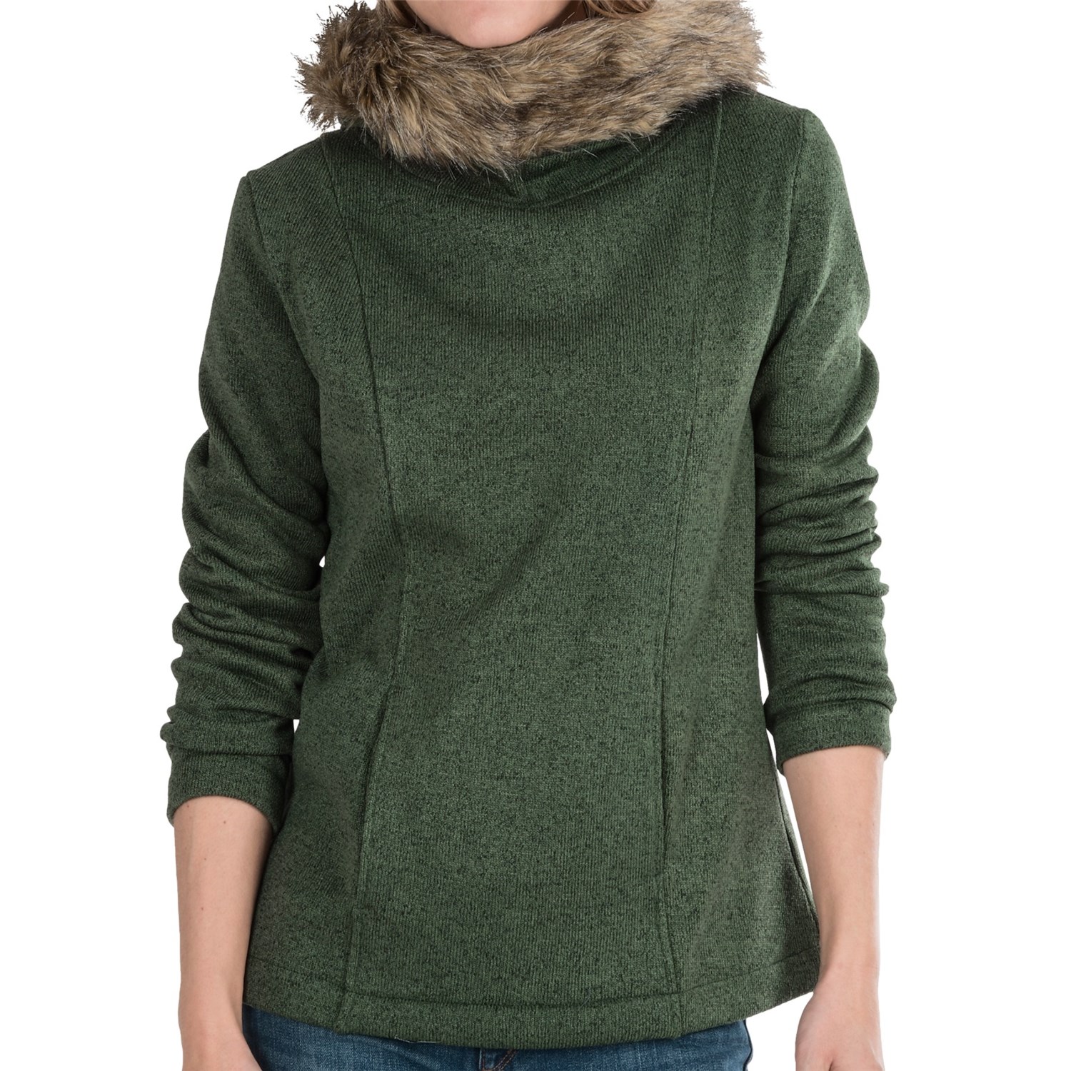 Closeouts. You’ve got two ways to show off the plush faux-fur trim on Wooly Bully Wear’s Vail hoodie: Wear the attached hood up and let the fur frame your gorgeous face, or wear the hood down to create a cozy, cowl-inspired collar. Other fantastic features include the flecked, sweater-knit fabric, soft fleece backing and shaping seams for flattering fit.