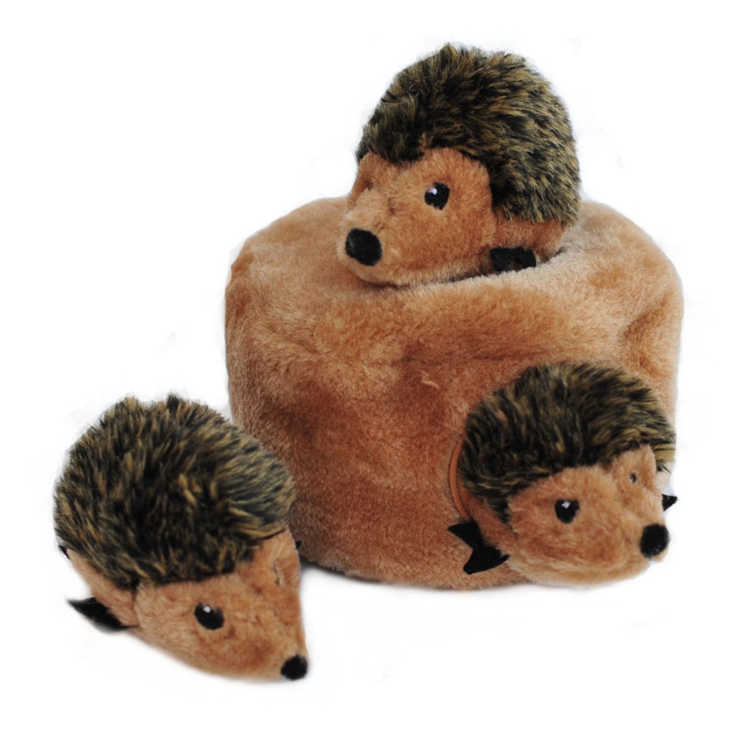 Closeouts. Your playful pooch will love the hide-and-seek fun of ZippyPaws’ Hedgehog Den Burrow dog toy — a plush hollow design with three squeaky hedgehogs he can dig out.